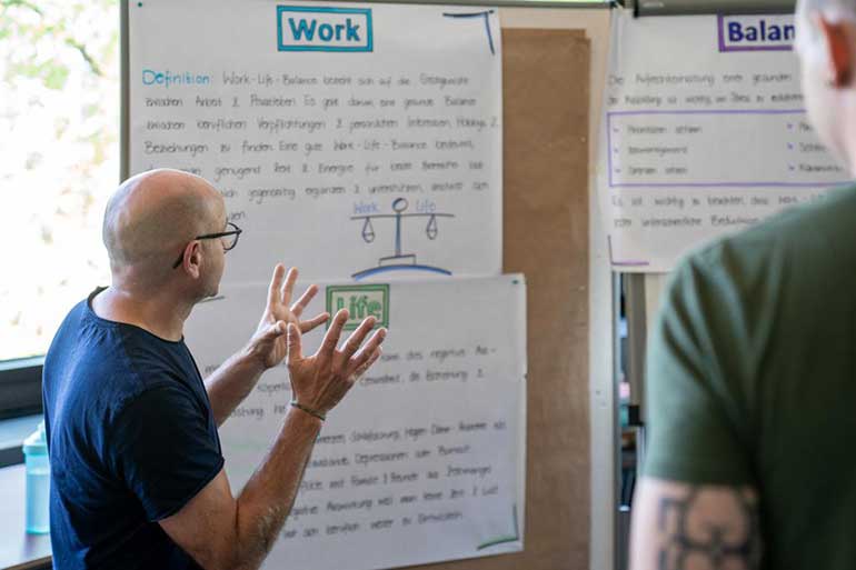 Im Teilmodul A liegt der Fokus auf der Auftrittskompetenz, dem Lernen von Erwachsenen sowie dem Durchführen von Lernveranstaltungen mit Gruppen. Die Teilnehmenden erhalten eine Teil-Modulbestätigung und trainieren in praktischen Settings.